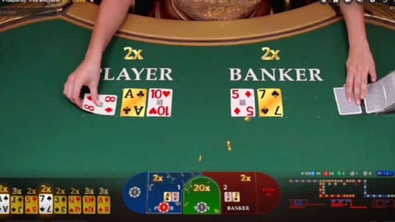 Trong Baccarat tiêu chuẩn (thường là 8 bộ bài), bạn không cược “bài của mình” mà cược vào kết quả giữa hai cửa: Player hoặc Banker. Cửa nào có tổng điểm gần 9 hơn sẽ thắng. Bạn cũng có thể cược Tie (hòa), nhưng đây là lựa chọn rủi ro cao xét theo xác suất dài hạn.